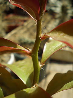 " Esta planta se cree es el eslabón entre plantas y catus, es rara por tener hojas y espinas de cactus a la vez"